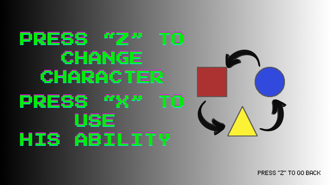 EL TRIANGULO PUEDE CAMBIAR LA GRAVEDAD PARA CAMINAR SOBRE EL TECHO (ESTO AFECTA A LOS DEMAS PERSONAJES)